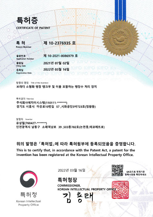 브래더 소형화 팽창 탱크부 및 이를 포함하는 팽창수 처리 정치 특허증